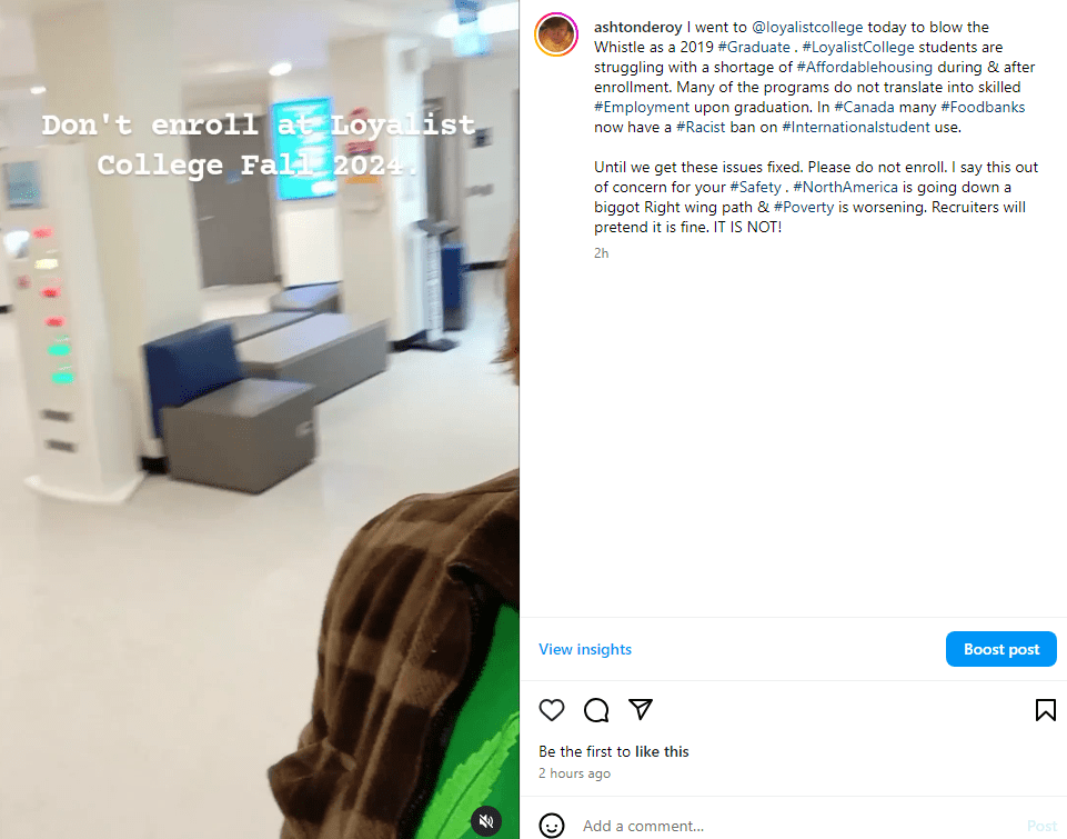 https://www.linkedin.com/feed/update/urn:li:activity:7044755646671425536/ Here is one such Social Service work Graduate working in what? A Menial Job that doesn’t require a College Education. We are being scammed…. This student attended Loyalist College’s social work program from 2016-2018. It is also a Diploma my Step Mother got. She is not working in the field either.